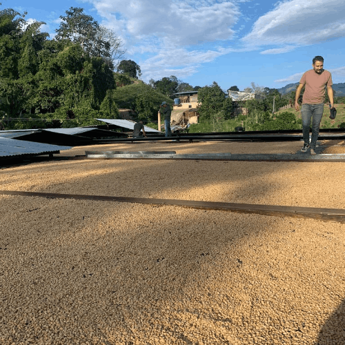 Marlon Rojas patří mezi novou generaci kolumbijských producentů, kteří ke kávě přistupují s maximální precizností a hlubokým porozuměním chuti. Původně pracoval jako pilot, dnes je farmář, Q-grader (certifikovaný degustátor) a v roce 2025 se stal kolumbijským šampionem v soutěži Cup Tasters (disciplíně, která prověřuje schopnost rychle a přesně rozpoznat jemné chuťové rozdíly, podobně jako když someliér naslepo pozná jiné víno během pár vteřin). Díky svým senzorickým schopnostem má jasnou představu o tom, jak má výsledný šálek chutnat, a tomu přizpůsobuje každý krok na farmě.