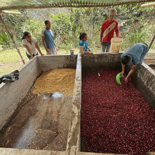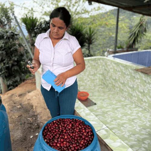 Maribel Herrera Torres je producentka kávy z oblasti San Antonio v distriktu Huabal v severním Peru. Farmařina je tu rodinná záležitost, Maribel se o své dva hektary stará společně s blízkými, kteří se každou sklizeň vydávají mezi řady Caturry a Catuai a ručně vybírají jen ty nejzralejší třešně. V posledních letech přešla především na naturální metodu zpracování, u které dosahuje lepších výsledků v kvalitě než u tradičních promytých nebo honey procesů.